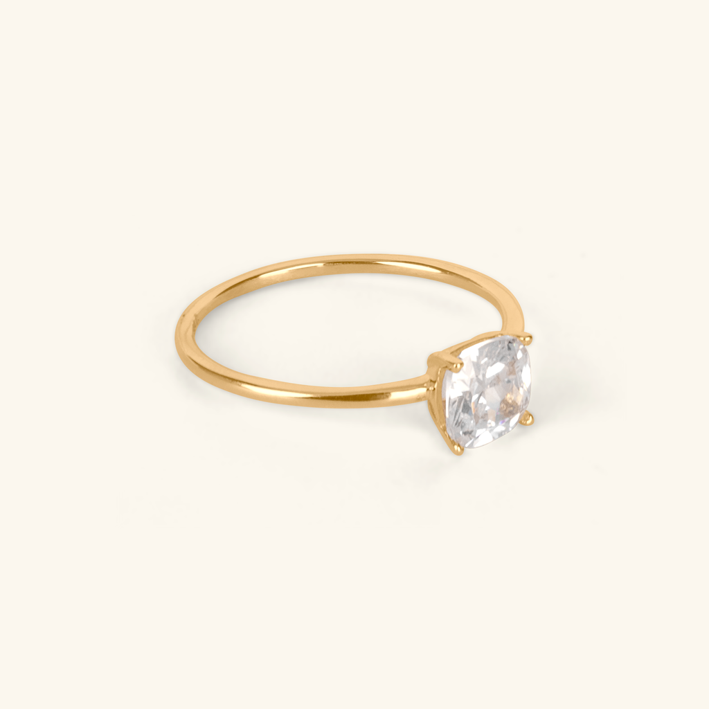 This sleek, geometric ring features a striking square-cut gemstone, perfect for stacking or wearing solo.